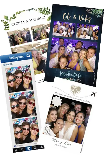 Las impresiones se presentan principalmente en dos tamaños: la tradicional tira (strip) y el formato Instagram o Polaroid. Depende de la opción que elijas saldran dos impresiones por vez (tiras) o 1 impresión por vez (Polaroid o Instagram)